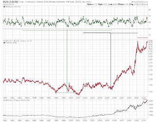 Plotted above is the ratio of gold to a precious metals index. The bubble burst October of 2008, at the peak of the market panic.