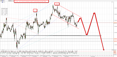 After yesterday's recovery and gap fill there was more more weakness on ES and EURUSD overnight. It seems likely that there is more downside coming because EURUSD is still well short of the channel target in the 1.36 area. I had drawn a trendline for a likely interim bounce from EURUSD overnight and so far it has bounced 55 pips from the hit there so I'm expecting EURUSD to bounce a bit more before the decline resumes. I'd normally expect to see a small declining channel on a move like this and if so, the short term target will be in the 1.39 area if hit today: