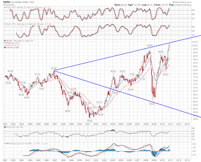 Copper is now close to making all time highs. Copper has made highs over 400 twice before in 2006 and 2008 but has retraced sharply afterwards both times: