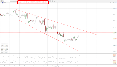 We don't yet have confirmation that stocks have bottomed yet of course, but we may well get that today, as NQ and ES are both nearing a test of their declining resistance trendlines. On the Nasdaq futures (NQ) I'm seeing declining resistance in the 2130 area. A touch there is a perfect short entry of course, as it is declining resistance on a declining pattern, and the risk/reward for a short entry there is therefore excellent with a stop slightly above the trendline. On a break of that trendline however it becomes an excellent long entry for the further upside that should follow that break: