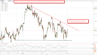 I've been neglecting the major commodities and minor USD currency pairs in my daily posts recently, partially because I lost all the trendlines on my commodities charts when my main charting computer crashed last week. I'm planning to post the main ones I follow at least once a week in future and I have oil today, where I have a small rising channel within a larger rising channel on the 60min CL chart: