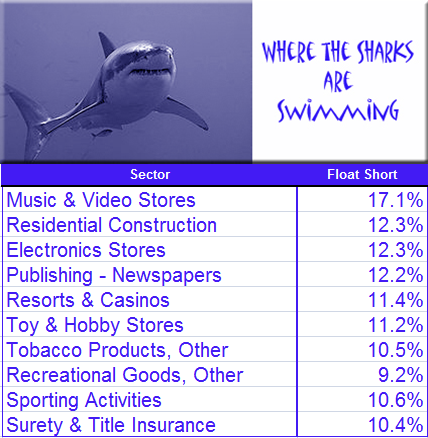 Short Interest:  Here are the sub-sectors with the highest short interest.  Note that short interest is updated 2x per month.
