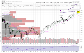There is some negative divergence between the oscillator and the price action; however, the daily chart is not extended relative to the trend line. Earnings will be coming out soon and will feed the charts with new information. As we know, it is not the news, but the market's reaction to news that is instructive.