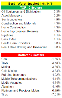 The broad market advanced .73%. Much is being made of how January starts as a great prognosticator for the balance of the year. Statistics for the first week in January and what that bodes for the entire market abound, along with analogs, ideologues and all manner of other 'stuff'. History repeats, rhymes, and more often reminds that we never step into the same river twice, but most times our feet will get wet, sometimes the river has run dry and sometimes we just might drown. I find that to be a useful mental model as an antidote for over generalizations and wild prognostications.