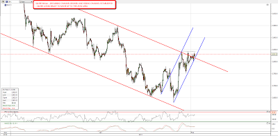 That we are still seeing some promising topping patterns is still the case though. On ES we seem to have a broadening top forming, and I'm looking with some concern at the top trendline, as to reach it we would have to break strong trendline resistance in the 1313 – 17 area. I've marked in two internal trendlines that look likely to provide resistance this week: