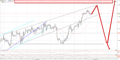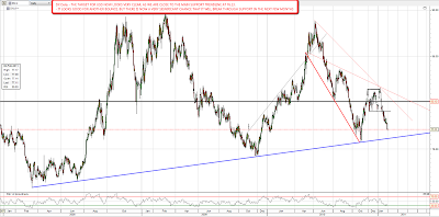 Copper had a big break up yesterday, though oil and silver were strangely flat. EURUSD broke up to make a higher high again and I'm seeing a possible broadening formation on EURUSD that would give an immediate target of 1.388 – 1.39 before a reversal within the pattern to support at 1.3575: