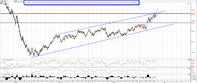 I've started to do a post or two a day at SharePlanner on individual stock and commodity charts. Ryan Mallory's invited me to do some of these writeups there and it works well for me as I can (shamelessly) select from a picked group of stocks there that have not been selected primarily on the basis of trendline setups and then write up and trade the ones that I like best. I'm planning to do more individual stock plays in future and this is a good way for me to build a large library of these. You can see my posts there in the featured bloggers section or at my blog. I'll be doing my more general market posts here every morning as normal.