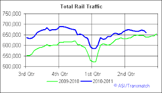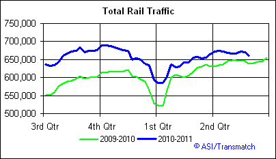 Rail traffic in the US continues to push higher in year-over-year comparisons. We did see coal shipments under perform last year during this week. So far year to date, only food tonnage is down from last year at this time.