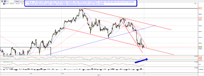 On ES the apparent declining channel is actually a gently broadening wedge. As with the others ES is now showing very significant positive divergence on the 60min RSI: