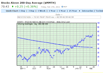 The three Daily charts below show that Stocks Above 20-Day, 50-Day, and 200-Day Averages are still trading either at or above near-term support levels…a lower support level was tested on the 20-Day Average chart and stocks bounced back up to close just above prior support. It will be important that this level be maintained on all three charts to confirm any further advance in equities.