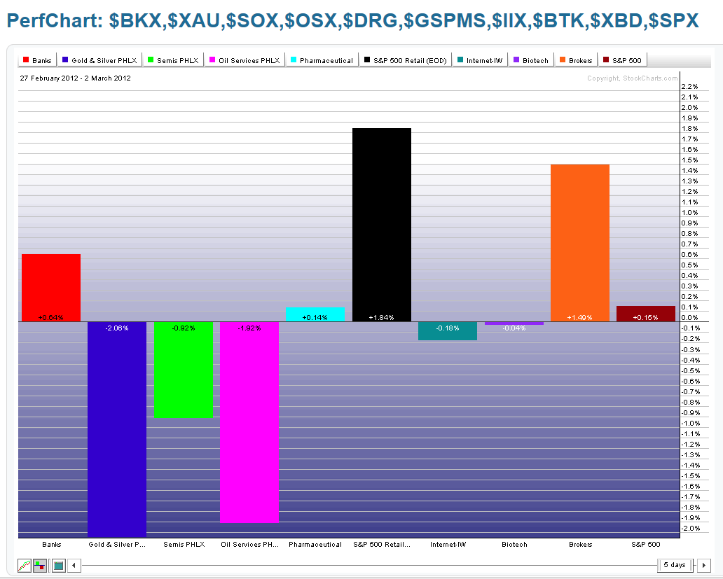 Further to my last weekly market update, here is a summary of where money flow ended for Week 1 of March, 2012.