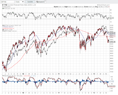 All of them are weaker than the SPX at the moment, the weakness is accelerating on the "periphery countries," and it has recently begun to accelerate on the French and London indices, and, to a lesser extent, on Germany's index.