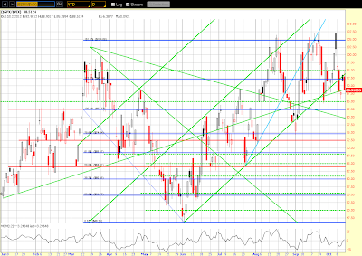 currently at a confluence of intersecting Fibonacci fanlines, 50 sma (red), 200