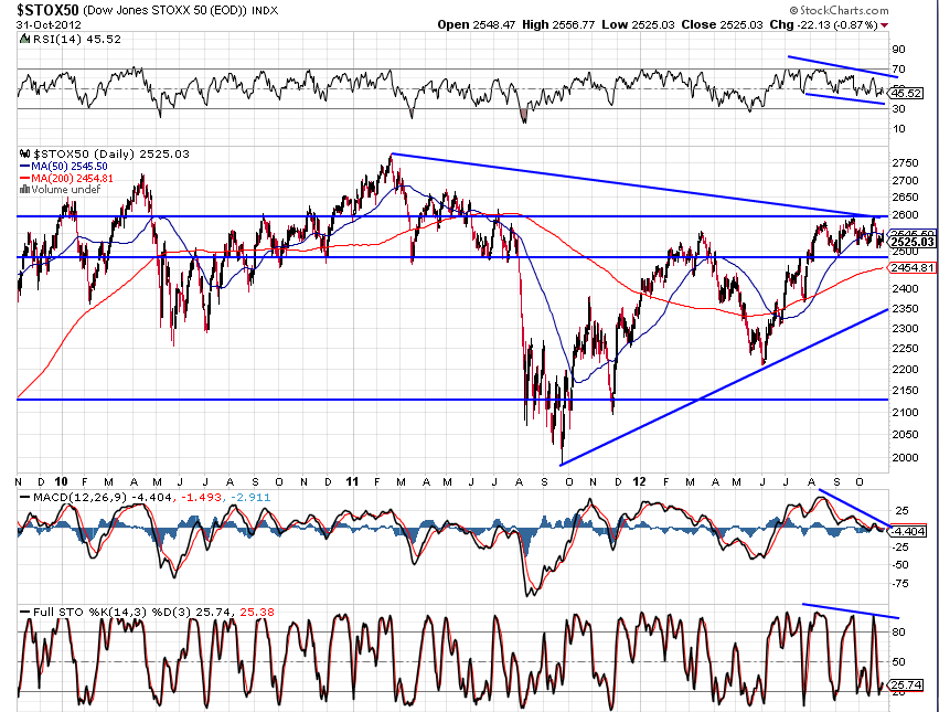 below. Price is swirling around the 50 sma, but declining RSI, MACD, and