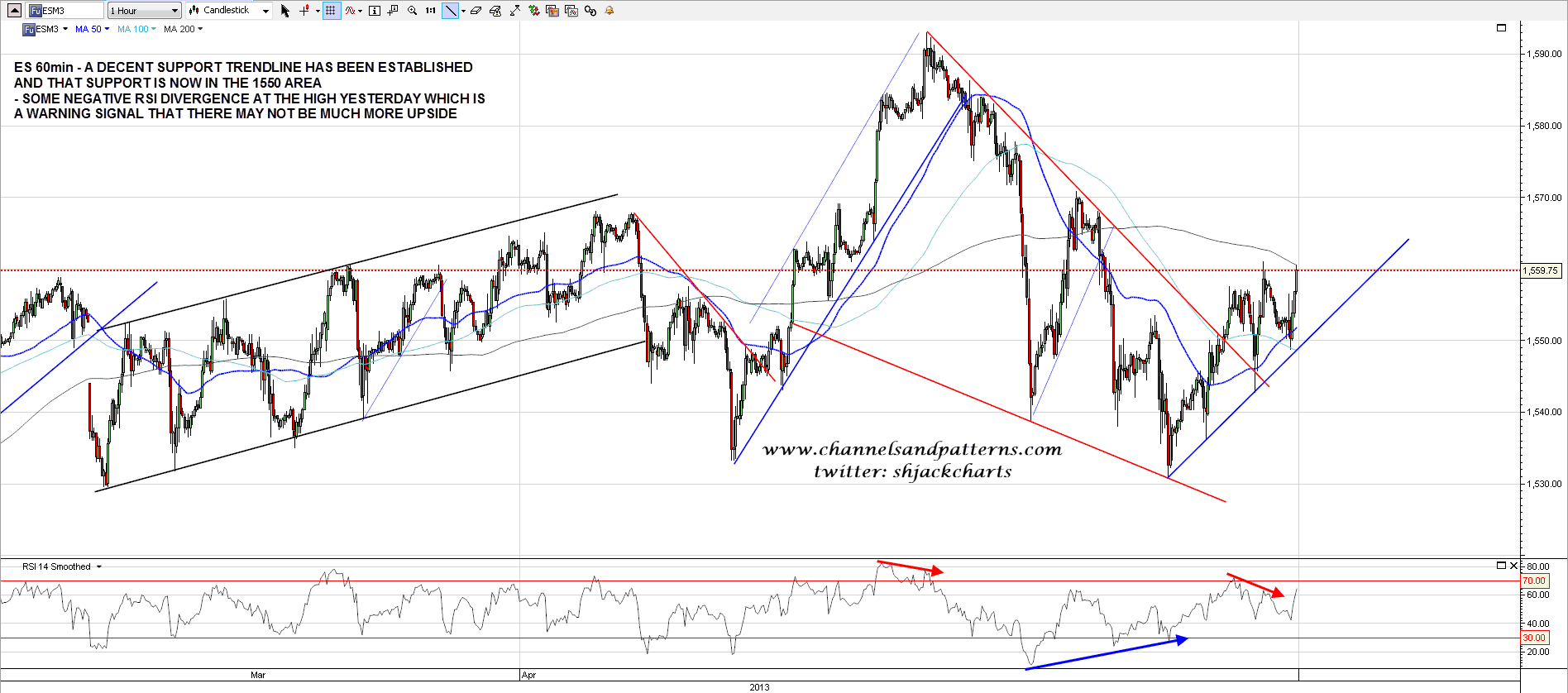 ES made decent progress yesterday and has established a decent rising support trendline. There was some negative RSI divergence at the high yesterday but after some retracement that high has now been broken with some confidence. The next decent resistance is in the 1570/1 area: