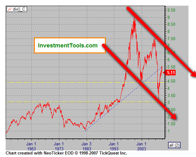 Thanks to Matt Hastings of Cypress Partners Trading for the blank long term Bloomberg charts I have annotated (black background), and to InvestmentTools.com for the blank long term charts adjusted for CPI that I have annotated (grey background).