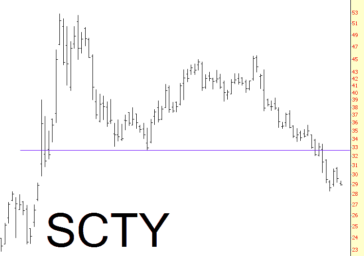 One company which benefited from the smell of Musk, however, was one of his other firms, Solar City, which actually does look seriously broken. I’d say that if this can claw its way back to about $32.50, it makes an appealing short position. It certainly looks dramatically more vulnerable than the stock above which, as Elon himself predicted, was going to cause a “tsunami of hurt” for bears.