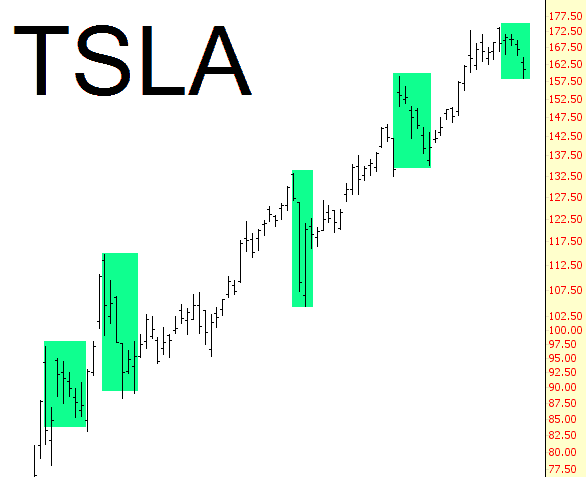 The Musk-mania is obviously a direct result of Tesla’s breathtaking ascent for most of this year (surely prompted by my glowing review of my own Model S, which I wrote when Tesla was trading at $36 per share.) I went out on a limb late last month and said it was time to take profits. Over the past few days, the stock has been slipping some, but there’s no reason to believe that it isn’t just another “backing and filling” like so many times before. I wouldn’t short it, no way, but I sure as hell wouldn’t buy it here either.