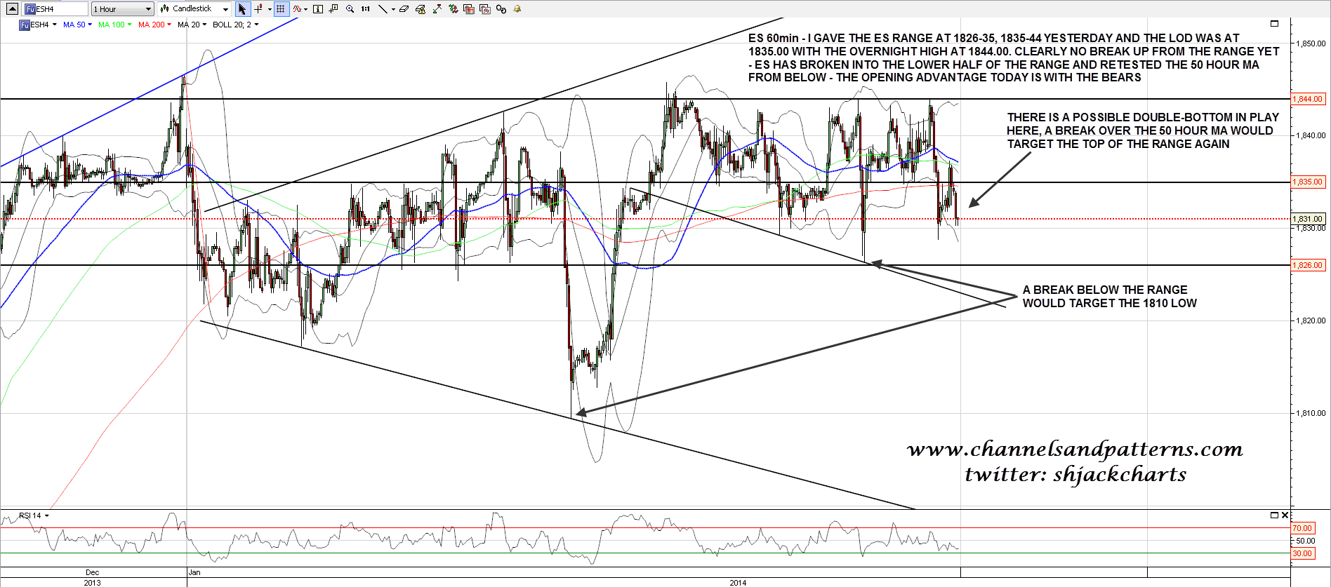 As I’ve been writing ES has broken down and retested the bottom of the range at 1826.50. The bears have an opportunity here to break ES down from this range and if that happens, there is a decent case and a technical pathway back to 1770 ES. Let’s see if the bottom of this range is as solid as the range top. 🙂