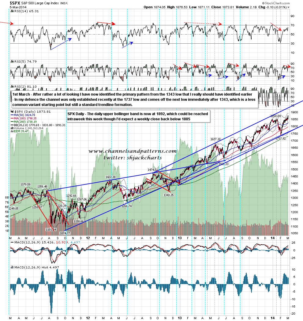 On the daily chart the upper band is now at 1891 and we could see that hit on an intraday move up. SPX daily chart: