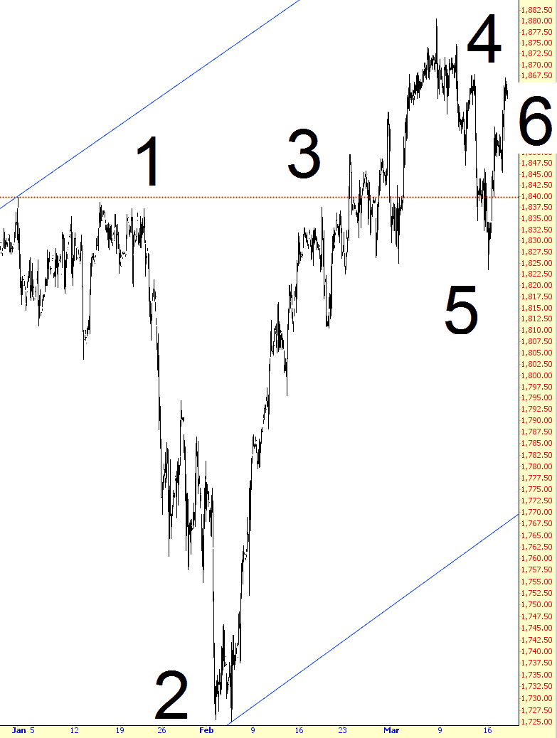 4 – Sudden reversal of market strength into sawtooth downslope – BEARISH – The rush higher was short-lived, and we started cutting lower in a series of lower lows and lower highs, although not with the resolve of the late January plunge.