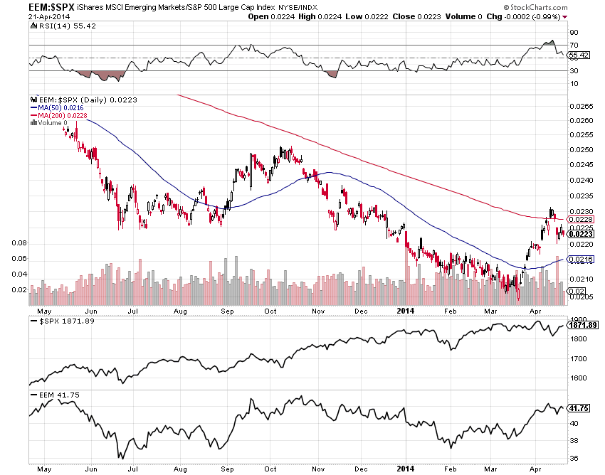 I’m watching emerging market weakness vs the S&P 500 to see if weakness persists, or whether investors increase their risk appetite and place their bets on emerging market recovery.