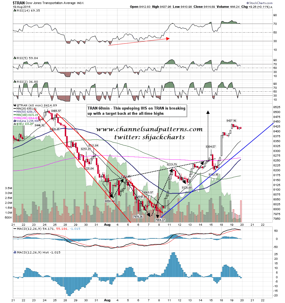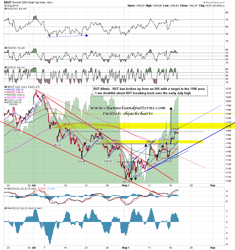 RUT has been the problem child IHS from the start and is the one that I’m thinking might not make target. If it does make target then would most likely do that in the context of significantly higher highs on SPX. RUT 60min chart: