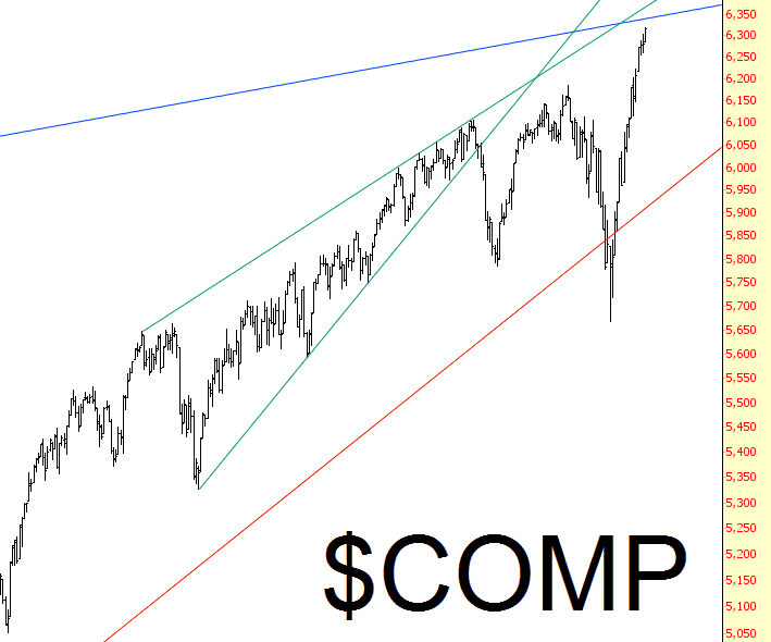 Indexes are zooming today, as the market seems under the impression that a Republican Senate is somehow going to make unicorns dance, birds sing, and faeries giggle in the moonlight. We’ve bounced about 10% across the board in just the past three weeks. Here’s the Dow Jones Composite, today at its highest level in human history: