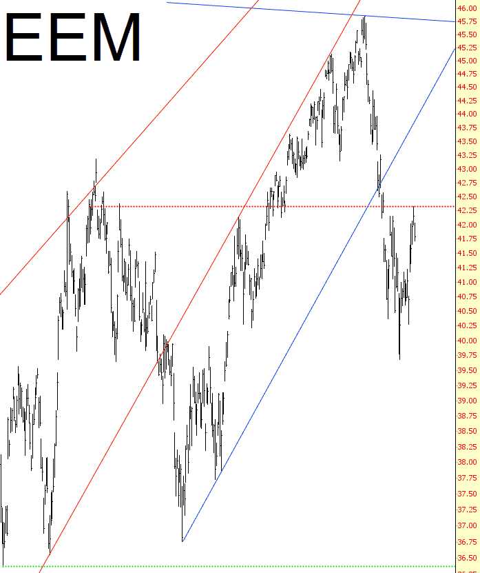 Lastly, I shorted EEM (emerging markets) today. With the insane trillion-dollar/year asset whoring that the JCB started, it’s astonishing to me that markets remain relatively weak. Emerging markets in particular have been kind of pitiful, so I decided to sell what was weakest. After the spanking I took last week, I decided it was time to amp up the shorts, so I added to my positions today, of which EEM was the biggest entry.