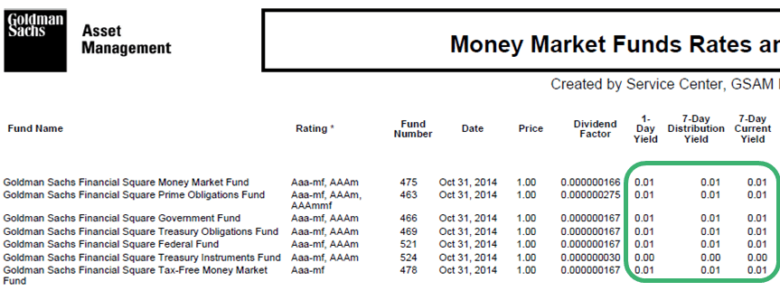 Speaking of rates, my prime broker wrote me today and, with a straight face, excitedly announced that I could choose any of these sweep accounts to earn one basis point (that’s one hundredth of a single percentage point of interest). Gosh, look at all these (identical) choices; it’s no wonder people feel “forced” into risky assets!
