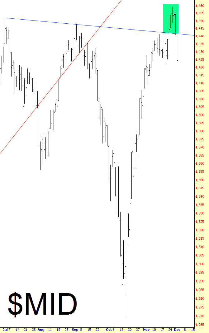 So there you have it. I’m inclined to agree with my esteemed colleagues, and now that we’re actually in December, the month possessed by St. Nick himself, I’d like to point out the breakout of the MidCaps has failed spectacularly: