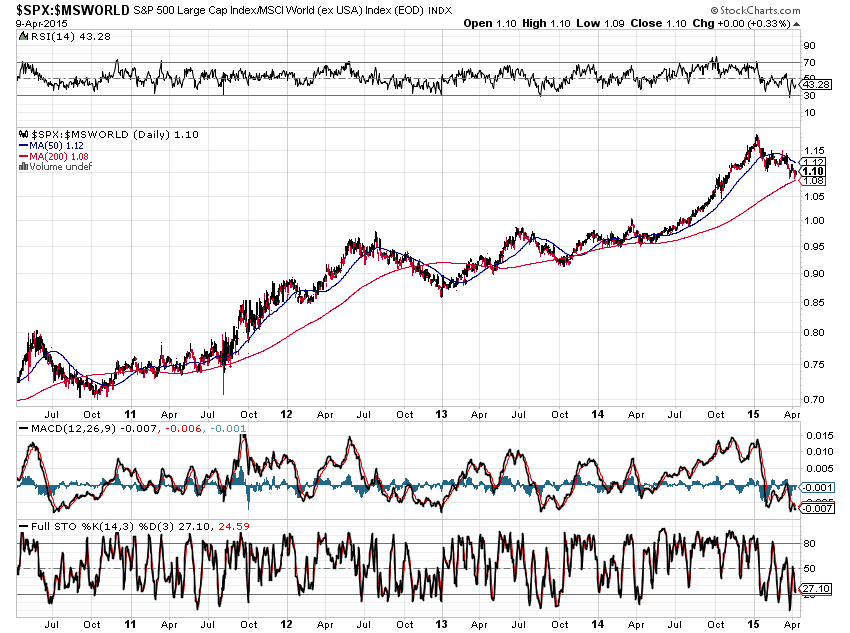 The following 5-Year Daily ratio charts of the S&P 500 Index compared to Major World Indices shows that the SPX has underperformed all of them since the beginning of this year, and some for the past 1 1/2 to 2 1/2 years.