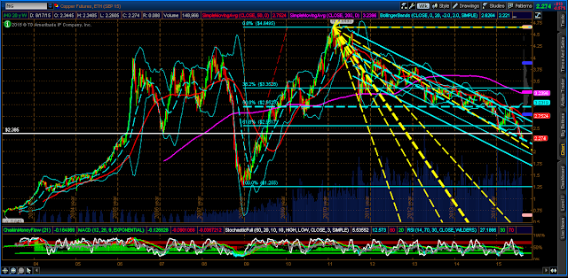 • a drop and hold below the current price on COPPER (2.274 and now sitting at the downtrend channel “mean”) could send price plunging