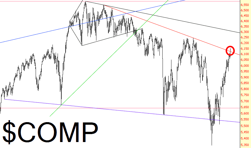 We seem to be back in “real soon now” mode (e.g. “this insane countertrend rally will stop and we will get sinking prices again…………..real soon now.”) That’s all well and good, but it just doesn’t seem to be happening. Of course, after the Fed did their announcement, there were a couple of times when it looked like the jig was up, but, nope – – the market ultimately pushed higher.