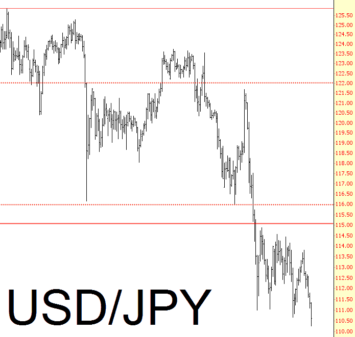 I have long prediction the USD/JPY would fall, and although it has taken a long time, it’s been making its way lower in grinding steps. This is pretty much the exactly opposite of what Japan’s limitless “easing” is doing, since it seems the market is sick to death of Kuroda and is reaching the conclusion that I reached a long time ago, which is that he’s a hapless, bureaucracy-bound imbecile.