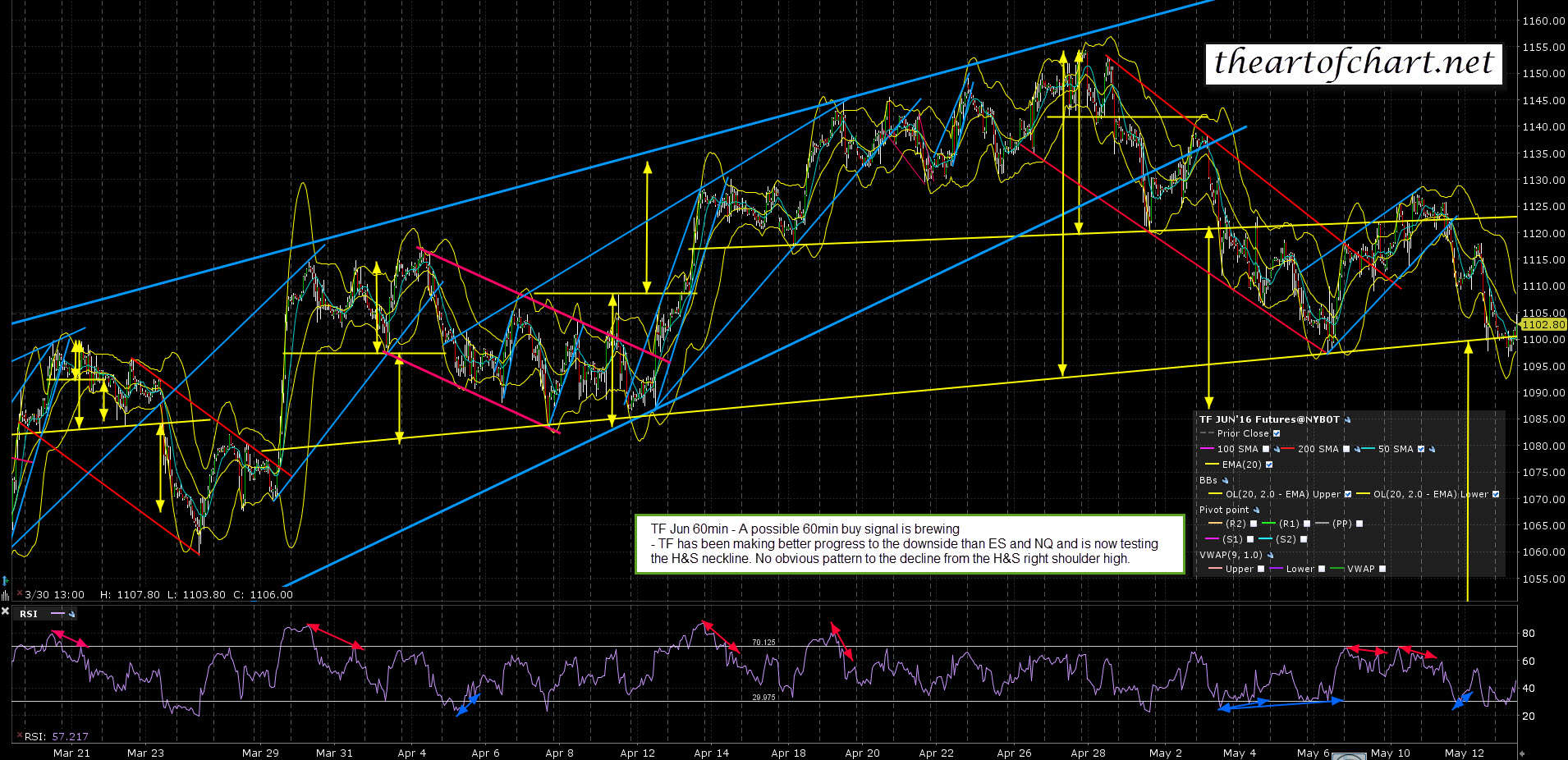 No matching pattern on TF and TF has managed to test the H&S neckline now, though that hasn’t followed through yet. TF Jun 60min chart: