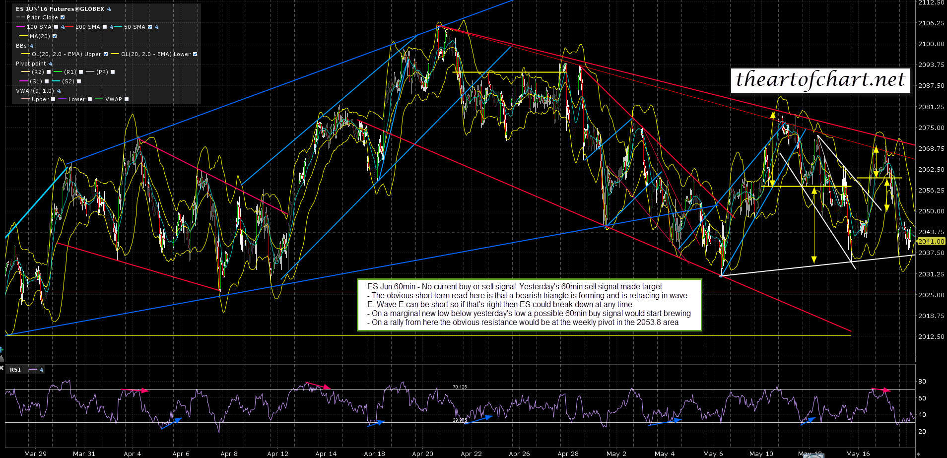 There was a lot of positive divergence on the 15min charts at the close last night and we are seeing a rally this morning. The big resistance levels on SPX that I’m watching here in the event that the rally heads higher are the 50 hour MA at 2063, and the daily middle band at 2070. SPX 60min chart: