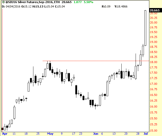 I’m not sure what modest downtick is being referenced, but “all” the gains were not gone. So, as for precious metals – – God bless ’em, and may they simply keep lurching higher evermore. And if between July 4 and 5 they weaken a bit, I say again: whatever.
