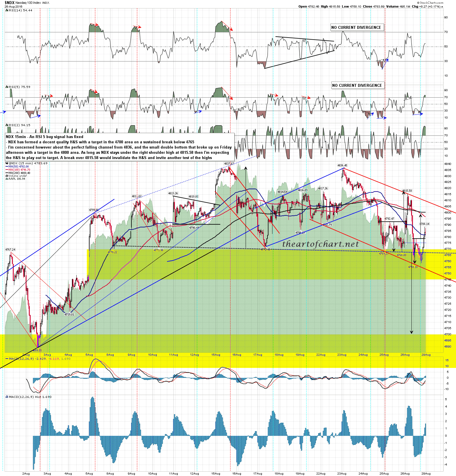 NDX hasn’t quite reached the 4800 area target I gave and might need to. NDX 15min chart: