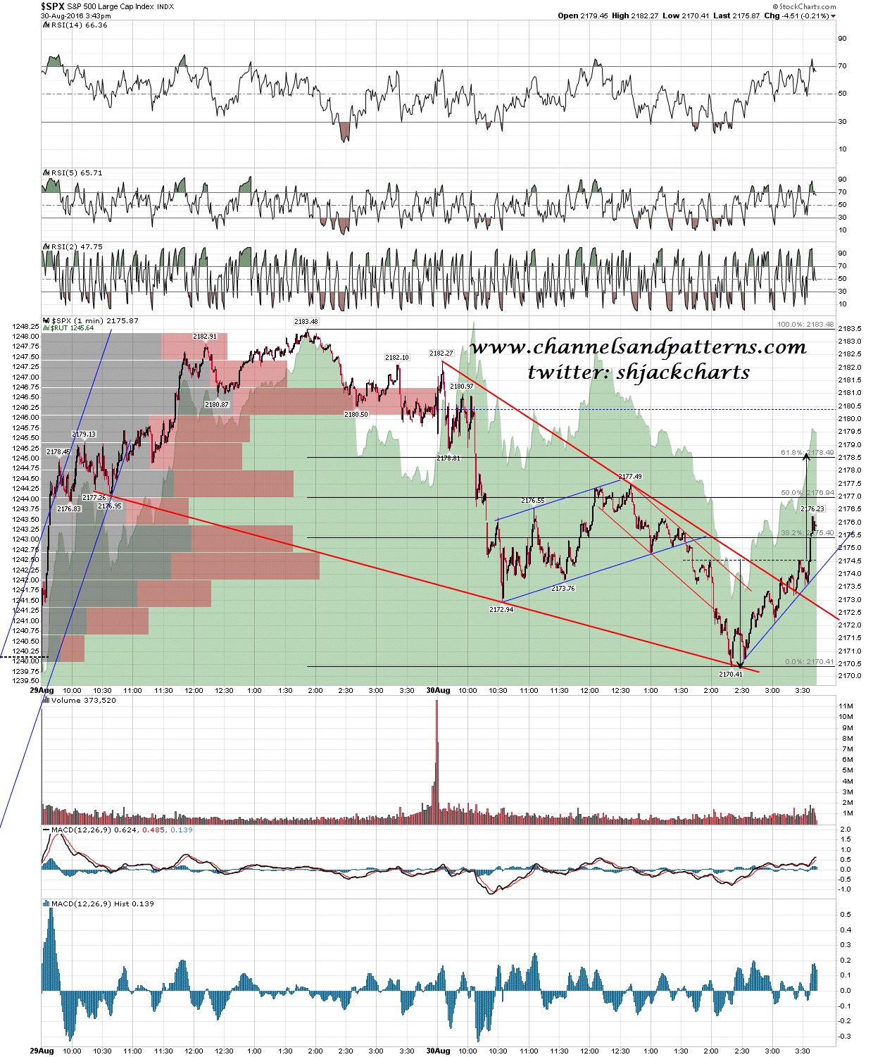 I’m wondering about a triangle here. Yesterday was a lower high and today was a higher low. If this is a triangle then as and when it breaks it would likely break up into at least a retest of the high. Bears may get another try tomorrow, but if we see a break over 2183.48 at this stage then we might well see a retest of the all time high, and very possibly higher. If that happens then this very boring tape may extend well into September