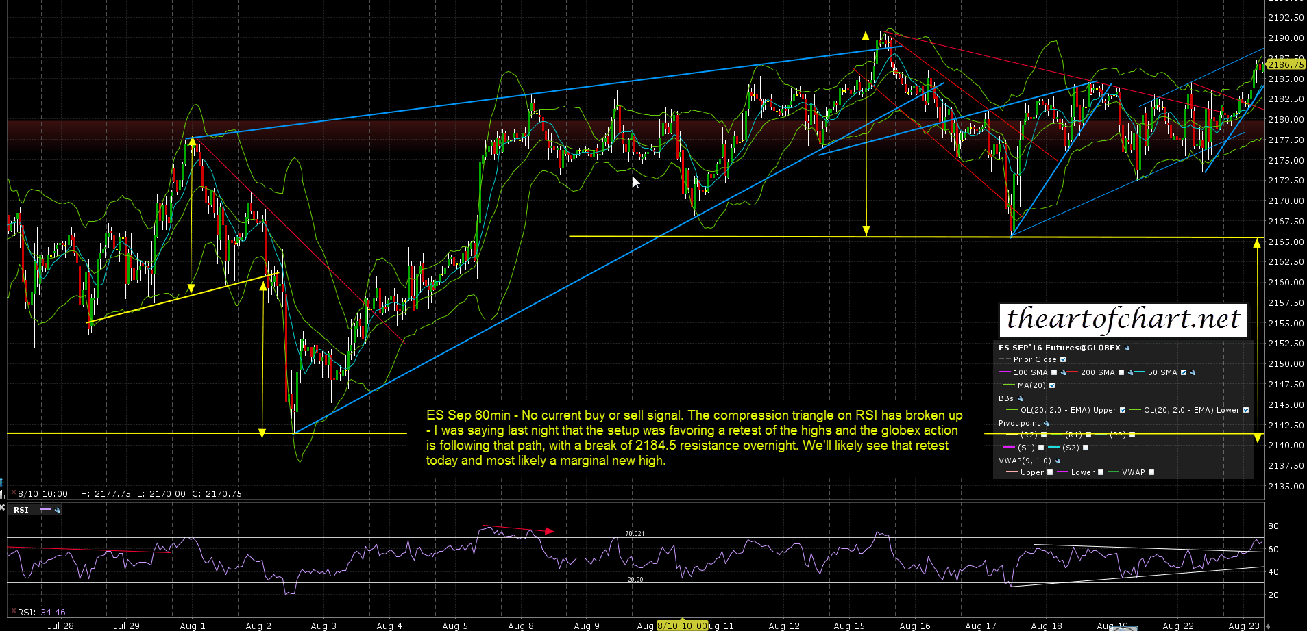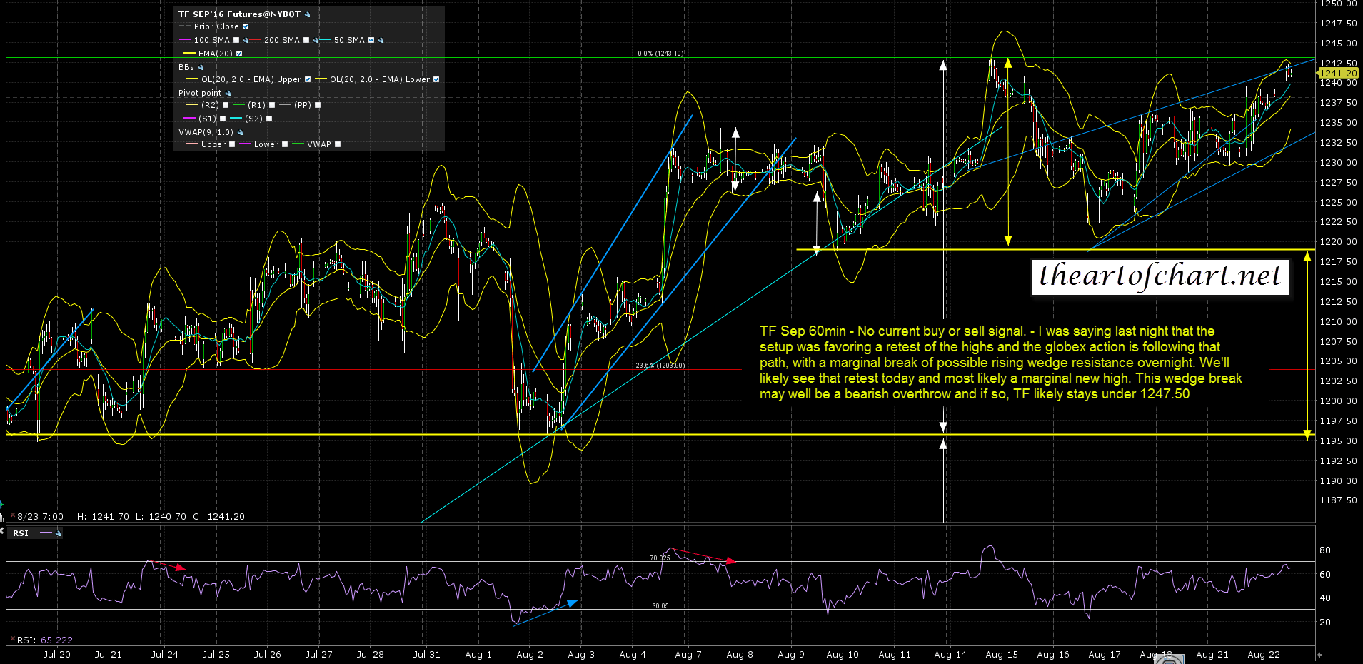 I’m added the ES, NQ & TF charts that I posted for members at theartofchart.net this morning, and I have updated all of those to show the now likely double top setups rather than the H&S setups that had been forming. ES Sep 60min chart: