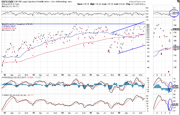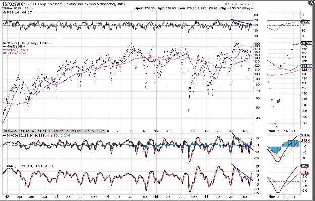 I’ve written about the SPX:VIX ratio many times in the past. I’ve mentioned, as recently as November 13th, that it will be necessary for the bulls to hold price on this ratio above the 150 level in order for SPX equities to continue their rally with little volatility to impede this rise.