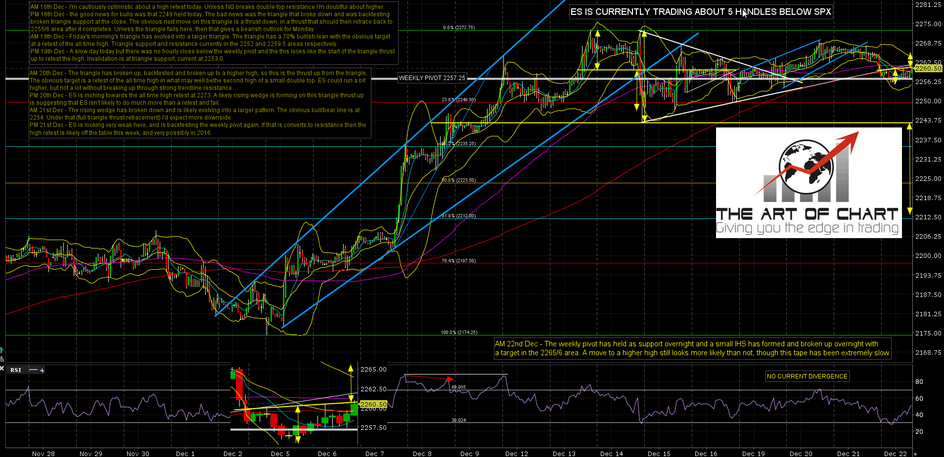 As I am finishing this post ES is testing support at the 2254 bull/bear line I gave a couple of days ago. If that breaks with any force then the odds of reaching the flag channel targets I gave above are high in my view. What happens at this inflection point likely decides the day today.