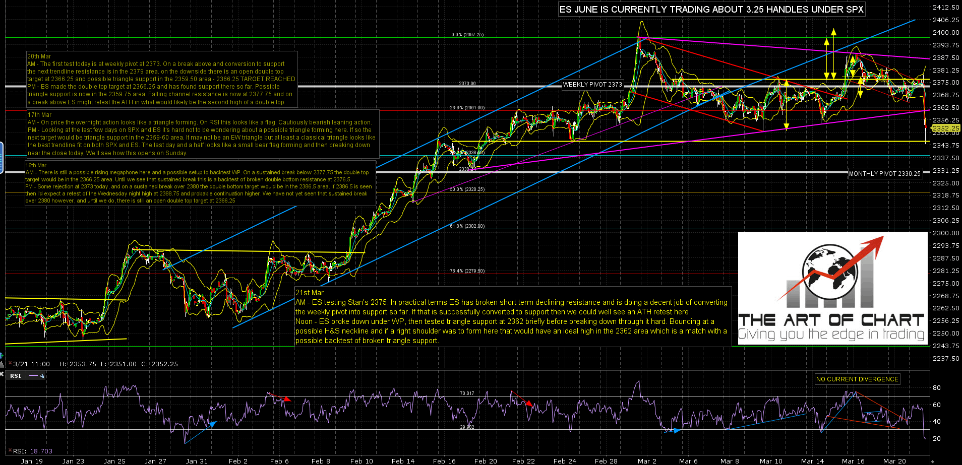 I’m seeing some H&S potential on ES here if we see a rally into a backtest of broken triangle support in the 2362 area (ideally). ES Jun 60min chart:
