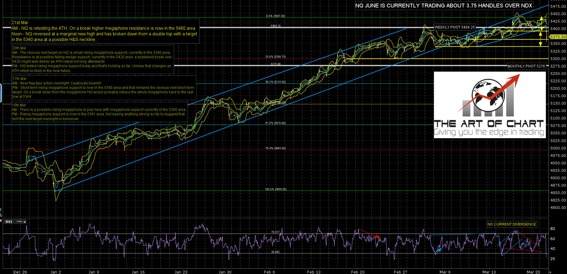 NQ made a new ATH this morning and then broke down from a small double top with a target in the 5340 area that has not yet been made. NQ Jun 60min chart:
