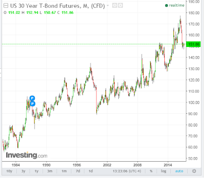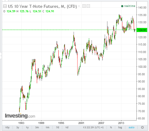 As can be seen from the following long-term view of 10 and 30 year bonds (monthly charts), each is facing an imminent decision…whether to break fairly substantial major support at their current levels and, potentially, fall to levels not seen since the 2008/09 financial crisis, or resume their flight-to-safety bounce to retest prior highs.