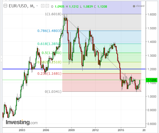 And, should the Euro break and hold above 1.1500, it would face long-term Fibonacci resistance around the 1.1680 level, as shown on the Monthly chart below.