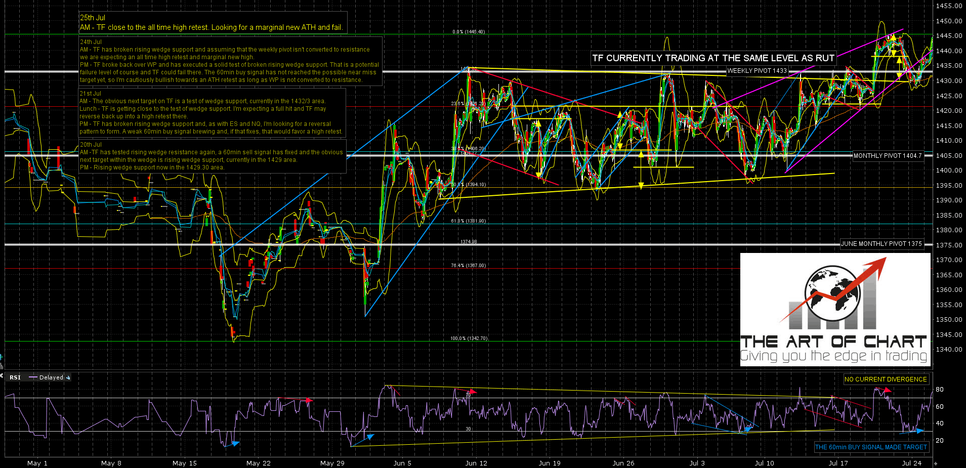 The ES, NQ and TF futures charts below were done an hour before the RTH open for Daily Video Service subscribers at theartofchart.net. If you are interested in trying our services a 30 day free trial is available here.