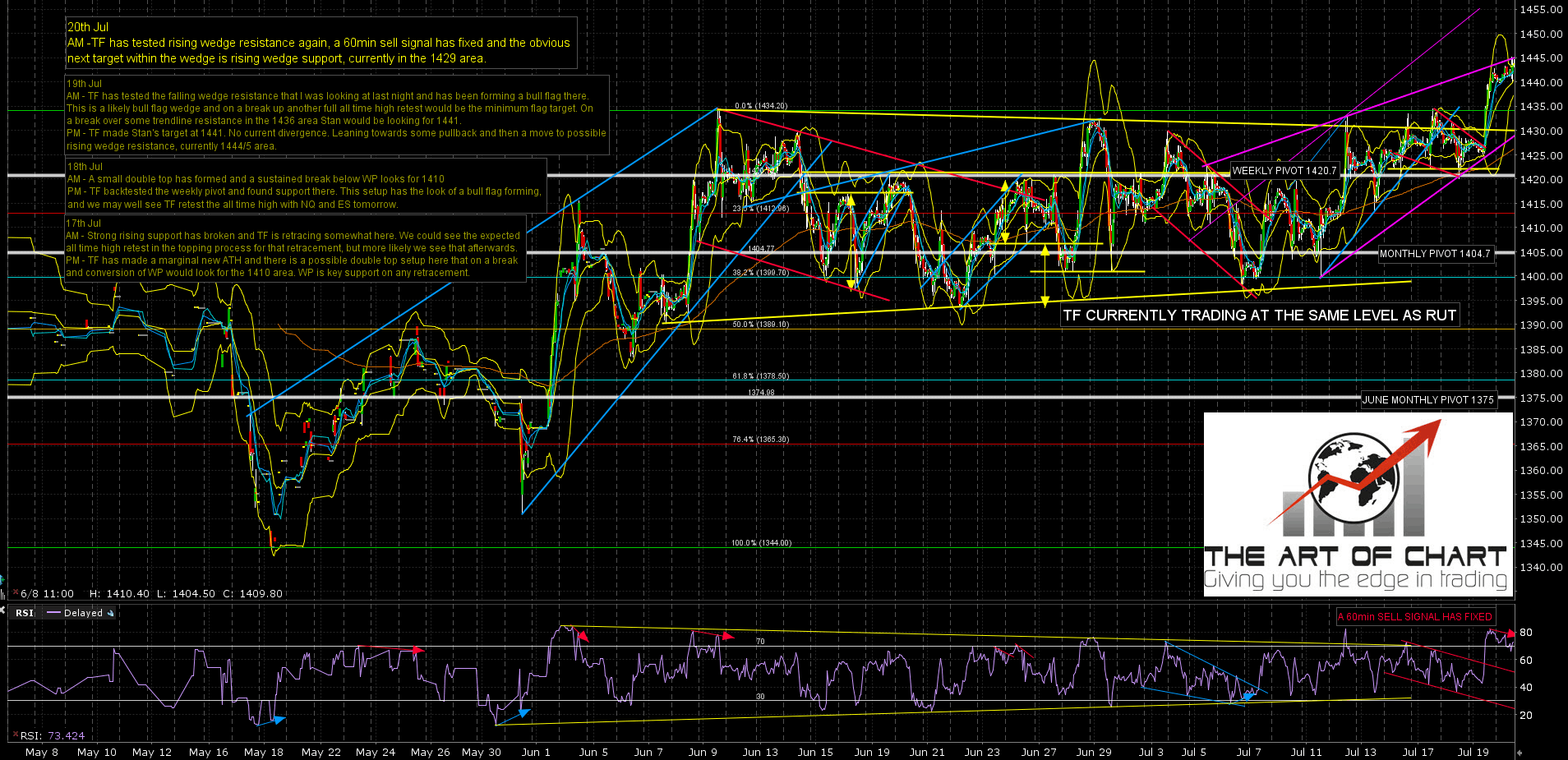 The ES, NQ and TF futures charts below were done an hour after the RTH open for Daily Video Service subscribers at theartofchart.net. If you are interested in trying our services a 30 day free trial is available here.