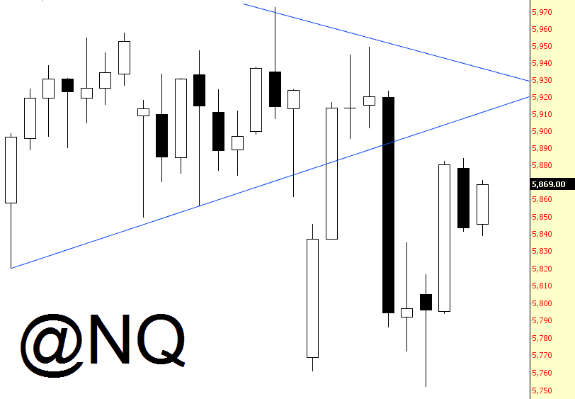 Well, my hope that prices would swan-dive away from the broken trendline are denied – – or at least delayed – – as equity prices clamor back toward the underbelly of the broken trendline. We see that here with the S&P 500 e-mini futures…….